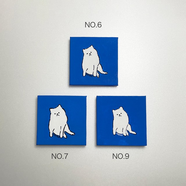 7cmの正方形のミニ原画です。 白いもふもふのわんこがおしりを向けています。 ミニサイズなので玄関、机の上等どこでも飾りやすいです。 画像に記載しているナンバーがシリアルナンバーです。 【サイズ】 70 × 70 mm 【素材】 キャンバス、アクリル絵の具、鉛筆